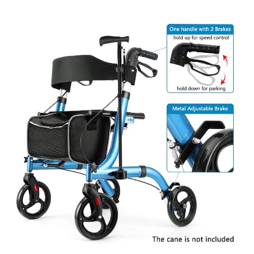 Enhance your walking experience with essential accessories such as removable storage bags, cane holders, and dual braking systems for added safety and convenience.