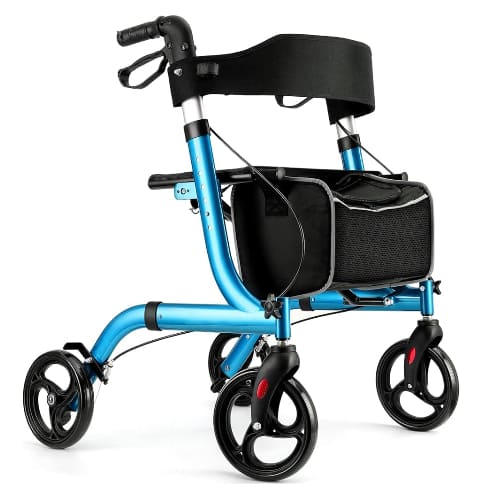 This classic lightweight aluminum rollator features 8-inch all-terrain wheels and a padded seat, making it an ideal choice for daily indoor and outdoor use.
